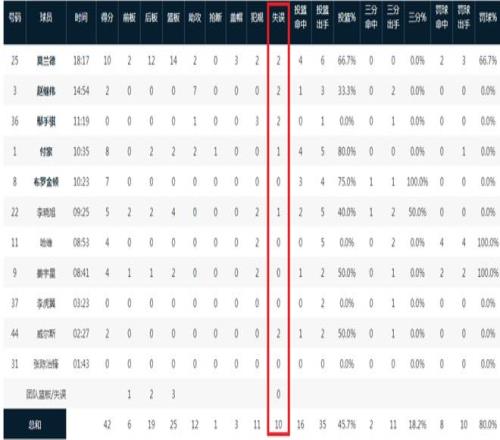 遼寧第二節(jié)狂送8次失誤,上半場(chǎng)失誤數(shù)10-2比同曦多出8次。