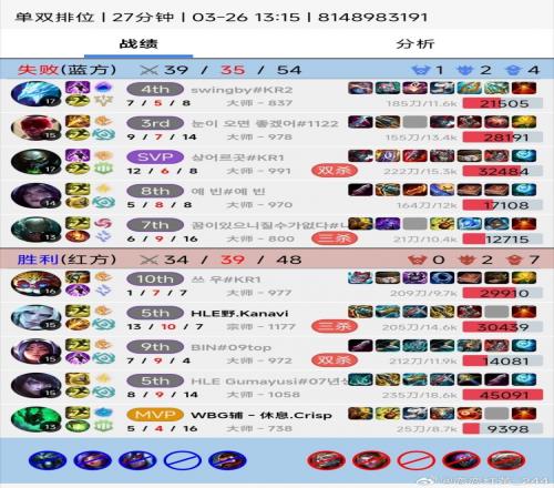 體育播報3月26日宣 lqs撞車一個送死流玩法的佛耶戈,罵了一整局,最后結(jié)算發(fā)現(xiàn)是kanavi;