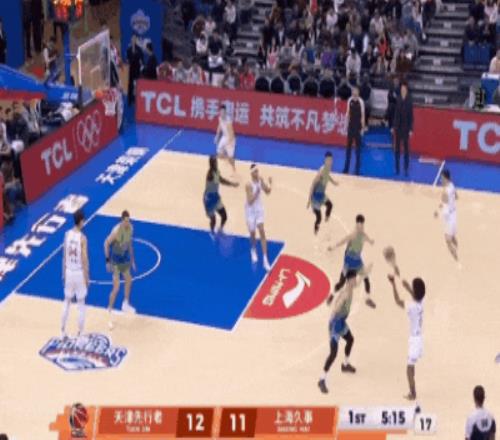 末節(jié),面對21分的分差天津男籃并沒有完全放棄比賽,主要得分點林庭謙、詹姆斯依然在場,而上海男籃則是派上了“新李花三兄弟”外加洛夫頓、張鎮(zhèn)麟的小個陣容。前半節(jié)時間,往往天津隊剛剛?cè)〉眠M球,上海男籃便有人站出來,分差始終還是在20分左右。