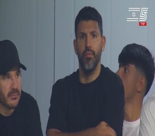半場時,鏡頭給到看臺上,阿圭羅現(xiàn)場觀戰(zhàn)。