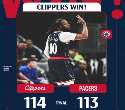 在末節(jié)還剩下3秒時,快船以112-113落后一分,泰倫-盧叫暫停之后,萊昂納德面對步行者三人的圍追堵截,他投進(jìn)準(zhǔn)絕殺球,僅留給步行者還剩0.4秒,最終,快船在客場制造了24分的大逆轉(zhuǎn),拿下了本場比賽的勝利。這樣一來,快船也迎來了4連勝。