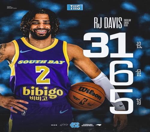 雖然NBA下來的球員星光熠熠,但南灣湖人的真核心還是RJ·戴維斯。這位前北卡球星本賽季場(chǎng)均轟下18.3分、4.9次助攻,三分命中率高達(dá)45.9%。他在場(chǎng)上的指揮若定,是這波12連勝的定海神針。