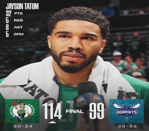 北京時間3月30日,NBA常規(guī)賽,凱爾特人客場114-99大勝黃蜂。此役過后,凱爾特人50勝24負穩(wěn)居?xùn)|部第二,正式鎖定季后賽。凱爾特人連續(xù)五個賽季拿到50勝,隊史自1987-88賽季以來首次。時隔38年,凱爾特人又一次做到了!
