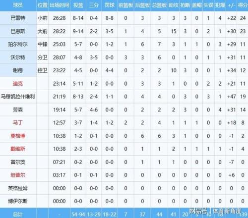 這場比賽猛龍那叫一個全民皆兵,多達(dá)8個人得分都上雙了。2米06的內(nèi)線大將馬穆凱拉什維利,正負(fù)值高得離譜,就像坐了火箭一樣飆到了+47,簡直牛到?jīng)]朋友!再看看魔術(shù)這邊,只有三個人得分上雙,而且沒有一個人得分能接近20分,這差距,就像大人打小孩兒似的。