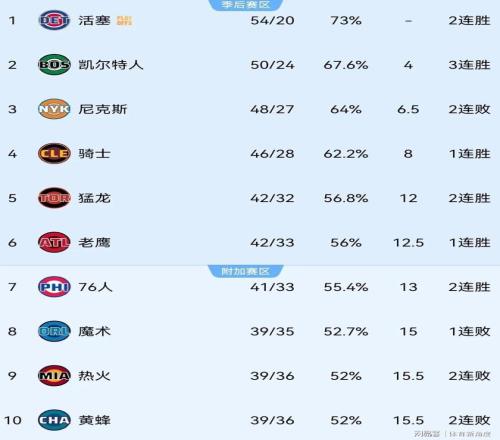 猛龍那,在當(dāng)今聯(lián)盟絕對是數(shù)一數(shù)二的,就像給對手布了個“天羅地網(wǎng)”。本賽季到現(xiàn)在,場均失分112.0,排在聯(lián)盟第九;防守效率112.1,排在第五;限制對手命中率46.5%,排在第十,這數(shù)據(jù)就像給猛龍的防守實力蓋了個“官方的大印。目前猛龍42勝32負(fù),排在東部第五,就比第七的費城(41-33)多贏了一場,這排名就像在懸崖邊上跳舞,稍有不慎就可能掉下去。魔術(shù)39勝35負(fù),排在東部第八,落后第六的老鷹(42-33)2.5個勝場,這差距就像一道難以跨越的鴻溝。
