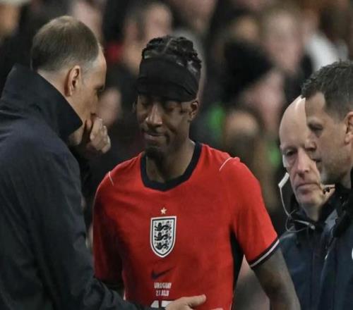 這位英格蘭邊鋒在周五于溫布利球場進(jìn)行的1-1平局中,在第38分鐘與烏拉圭球員發(fā)生碰撞后倒地。