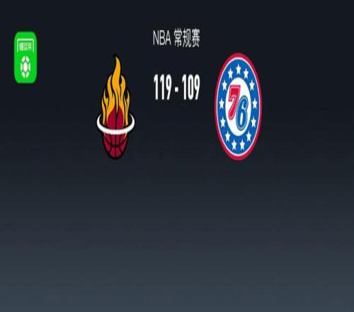 第四節(jié)熱火希羅拿下12分,76人恩比德拿下10分,最終熱火119-109戰(zhàn)勝76人