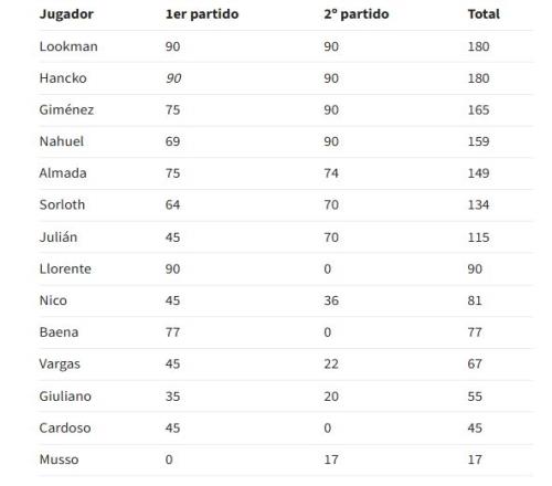 長途飛行也是個問題。例如,馬競原本在上午訓(xùn)練,但周四改到了下午,以便讓六名阿根廷球員能夠歸隊。他們在布宜諾斯艾利斯參加了對陣毛里塔尼亞和贊比亞的兩場友誼賽,其中阿爾瓦雷斯(115分鐘)、納韋爾(159分鐘)和阿爾馬達(149分鐘)的出場時間都超過了100分鐘。巴爾加斯在美國和墨西哥之間奔波,卡多索則在美國,他們也都不得不跨越大西洋。
