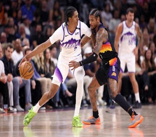 而馬刺和掘金打火箭都是吊打20分以上,從戰(zhàn)力對(duì)比來(lái)看,太陽(yáng)實(shí)際戰(zhàn)斗力確實(shí)在火箭之上。今天面對(duì)魚腩爵士,相比火箭打誰(shuí)都便秘,太陽(yáng)則打出強(qiáng)隊(duì)統(tǒng)治級(jí)表現(xiàn)。杰倫格林開場(chǎng)就進(jìn)入瘋狂模式,三分、中投全面開花,太陽(yáng)迅速打出一波流,將分差拉開到18分。第二節(jié),格林與布克繼續(xù)聯(lián)手轟炸,半場(chǎng)結(jié)束時(shí)領(lǐng)先優(yōu)勢(shì)已達(dá)28分,比賽早早失去懸念。全場(chǎng)比賽數(shù)據(jù)亮眼:布克貢獻(xiàn)26分3籃板8助攻,展現(xiàn)全面掌控力;阿倫砍下19分;伊戈達(dá)羅得到13分8籃板,內(nèi)線穩(wěn)固;替補(bǔ)馬努阿奇也有12分9籃板3蓋帽的全面發(fā)揮。而杰倫格林僅出戰(zhàn)22分鐘,便22投13中,其中三分11投5中,高效砍下31分6籃板3助攻。