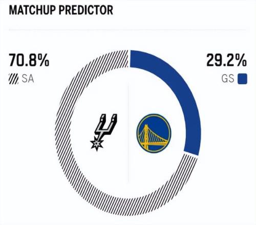 賽前,美媒ESPN對本場比賽進行了勝率預(yù)測,馬刺隊勝率高達70.8% ,勇士勝率則僅有29.2% ,差距非常明顯。
