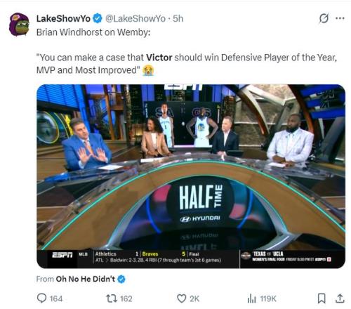 ESPN記者布萊恩-文霍斯特在評(píng)價(jià)本賽季的文班亞馬時(shí),他表示,本賽季的wemby有希望同時(shí)拿到最快進(jìn)步球員、最佳防守球員、最有價(jià)值球員,也就是三王合一。