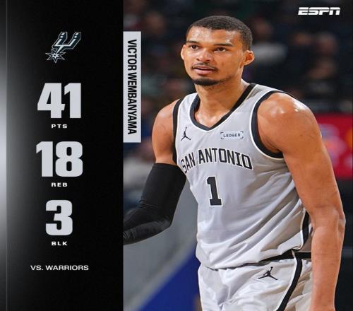北京時(shí)間4月2日,NBA常規(guī)賽,圣安東尼奧馬刺隊(duì)127-113大勝金州勇士隊(duì)拿到10連勝(現(xiàn)存最長(zhǎng)連勝紀(jì)錄)。這場(chǎng)比賽馬刺一直壓制勇士,上半場(chǎng)馬刺就領(lǐng)先21分,下半場(chǎng)馬刺的防守專注度有所下滑但還是牢牢掌控局勢(shì),文班亞馬再度拿到41+18的狂暴數(shù)據(jù)。