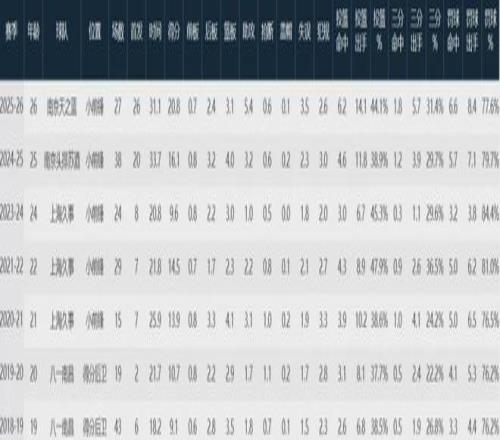 新任當(dāng)家球星郭昊文,出戰(zhàn)了其中27場比賽,場均上陣31.1分鐘貢獻(xiàn)20.8分3.1板5.4助3.5失誤(高居聯(lián)盟第一),三項命中率44.1%、31.4%和77.6%。