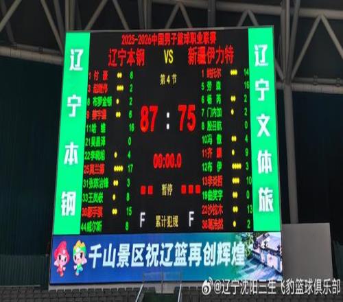 最后一節(jié),王嵐嵚命中三分,8分28秒,鄢手騏造犯規(guī)2罰2中幫遼寧隊(duì)首次取得兩位數(shù)領(lǐng)先,新疆隊(duì)連續(xù)進(jìn)攻打鐵和失誤,6分52秒,趙繼偉助攻莫蘭德暴扣打停對手,莫蘭德扣籃掛框做引體向上吃T,齊麟命中技術(shù)犯規(guī)罰球幫新疆打破得分荒,齊麟空切籃下得分,李曉旭補(bǔ)籃得手,李炎哲2罰2中,納托爾上籃得手把分差縮至個(gè)位數(shù),莫蘭德打成2+1,鄢手騏搶斷對手底線發(fā)球,李炎哲2罰2中,莫蘭德2罰1中,姜宇星空切上反籃得手,納托爾2罰2中,姜宇星再次空切到籃下得手,沙拉木打成2+1,1分44秒,馮傲反擊把分差縮至7分,莫蘭德2罰2中,李炎哲攻框得手,姜宇星補(bǔ)籃得手,姜宇星助攻鄢手騏命中殺死比賽三分球,最終,遼寧87-75擊敗新疆。