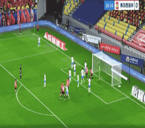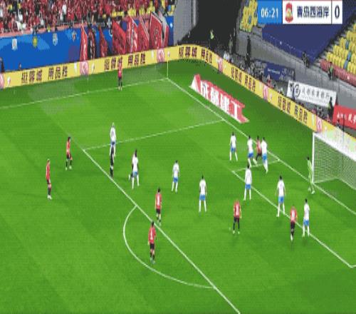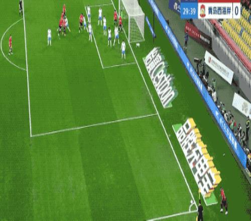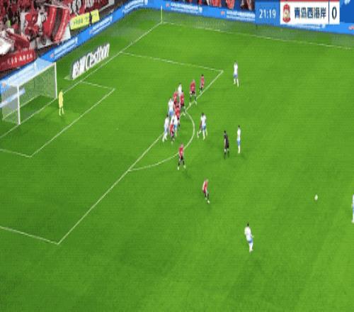 第21分鐘,青島西海岸打出戰(zhàn)術(shù)任意球,阿齊茲完全無人盯防,遠(yuǎn)距離頭球攻門,中衛(wèi)索羅金和劉殿座同時(shí)沖了過去,皮球稍稍偏出。
