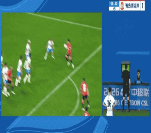 傷停補(bǔ)時(shí)階段,阿齊茲扳回一城。第96分鐘,主裁判吹停比賽,VAR顯示西海岸球員禁區(qū)內(nèi)明顯手球,蓉城獲得點(diǎn)球。