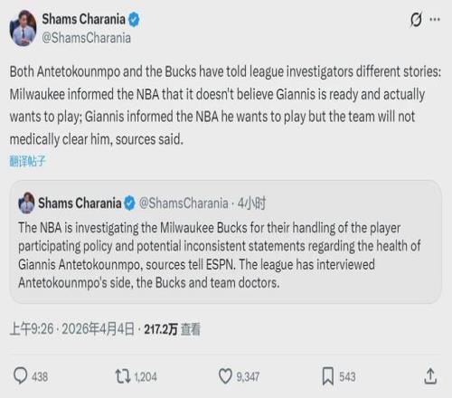 今天咱們要寫的并不是凱爾特人雙探花,而是雄鹿和字母哥。雄鹿和凱爾特人的比賽還沒結(jié)束時,ESPN名記Shams爆料,NBA官方正在調(diào)查雄鹿是否存在禁止球員參賽以及故意擺爛的行為,聯(lián)盟調(diào)查對象包括字母哥團隊,雄鹿管理層以及隊醫(yī)。