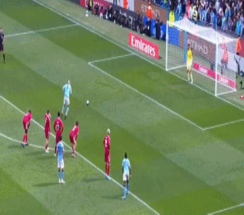 哈蘭德站在12碼處,準備操刀主罰點球。魔人布歐左腳低射球門右下死角入網(wǎng),曼城1-0領(lǐng)先!