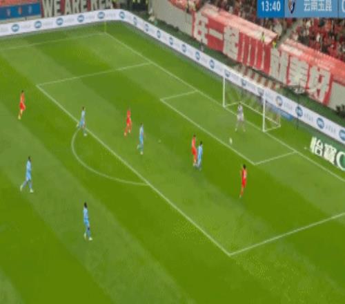 比賽的第14分鐘,楊希禁區(qū)內頭球似傳似射,劉祝潤鏟射錯過落點,萊昂納多門線補射破門。