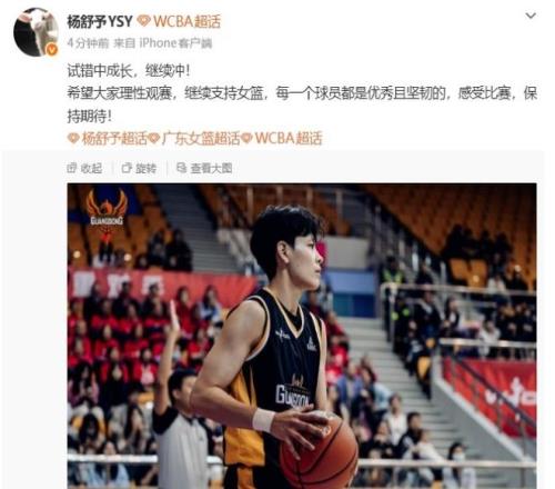 如今楊舒予時隔5天終于更新社媒,正式回應(yīng)一輪游出局無緣衛(wèi)冕,她寫道:“試錯中成長,繼續(xù)沖!希望大家理性觀賽,繼續(xù)支持女籃,每一個球員都是優(yōu)秀且堅韌的,感受比賽,保持期待!”