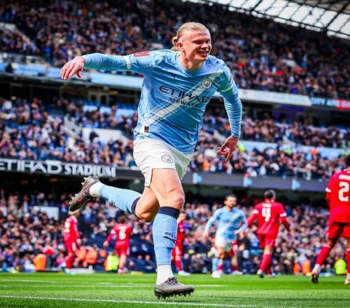 上半場(chǎng)補(bǔ)時(shí)階段,謝爾基送出直塞,塞梅尼奧下底傳中,哈蘭德頭球,梅開(kāi)二度。