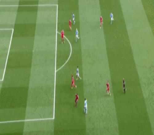 第27分鐘,薩拉赫禁區(qū)右側(cè)傳中,柯蒂斯-瓊斯插上背身做球,羅德里解圍不遠,?;倏擞虺樯浯蝻w。