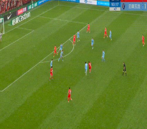 第14分鐘,楊希頭球傳中,劉祝潤鏟射到門前,萊昂納多跟進破門,這球最終判定為越位。