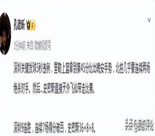 裁判經(jīng)過錄像回看,史密斯出手前時(shí)間尚未走完,但這個(gè)屬于踩線三分,被扣除了一分,但仍幫助深圳男籃完成比分反超,上演驚人絕殺。