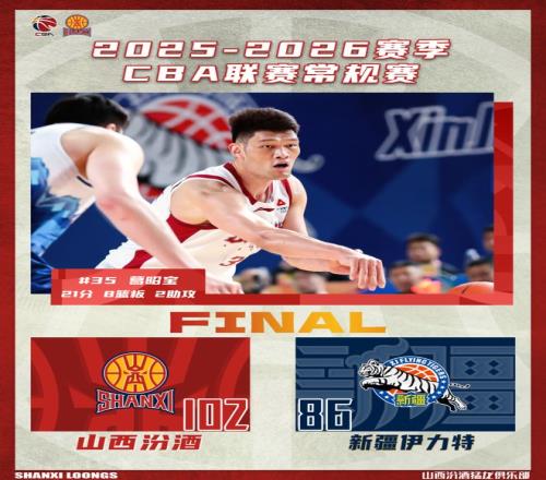 戰(zhàn)報(bào)葛昭寶21分8籃板山西汾酒10286戰(zhàn)勝新疆伊力特