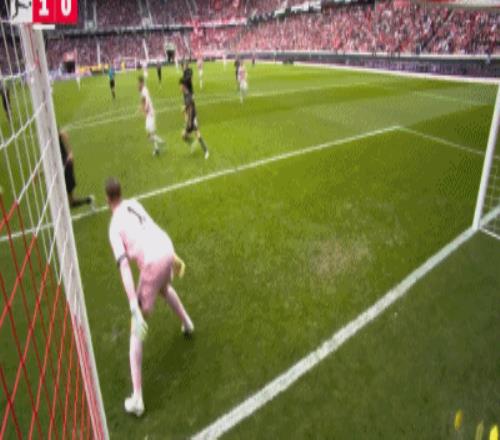 第43分鐘,卡爾射門被撲出,比朔夫補射打高