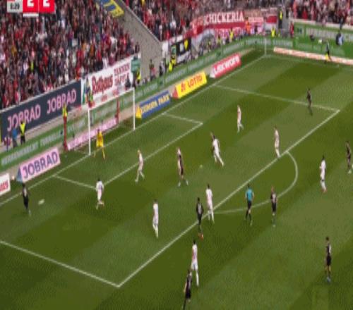 第34分鐘,弗賴堡越位位置頭球攻門,諾伊爾神勇將球撲出