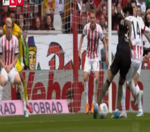 第11分鐘,比朔夫跟進(jìn)起腳打門,球被隊友格雷羅擋出