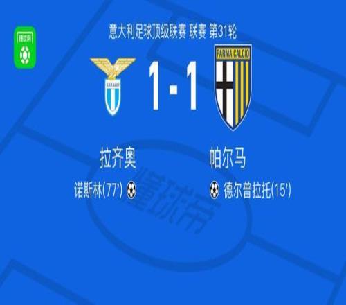 北京時(shí)間4月5日意大利足球頂級(jí)聯(lián)賽 聯(lián)賽 第31輪,拉齊奧主場(chǎng)對(duì)陣帕爾馬。拉齊奧諾斯林破門。帕爾馬德爾普拉托破門。最終比分拉齊奧 1-1 帕爾馬。