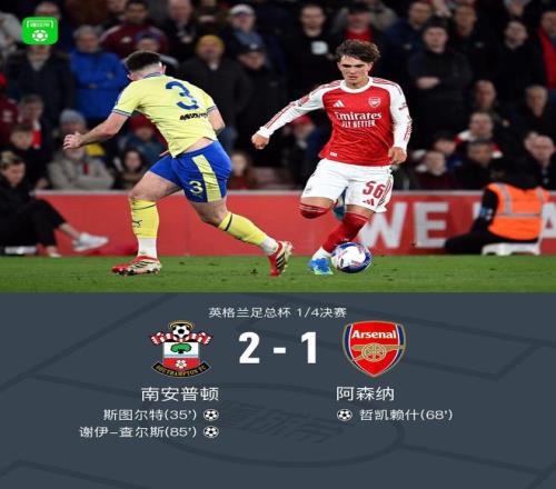 北京時間4月5日英格蘭足總杯 1/4決賽,南安普頓對陣阿森納。上半場,本-懷特出現(xiàn)冒頂失誤,斯圖爾特破門。下半場,哈弗茨助攻,哲凱賴什扳平比分。比賽尾聲階段,查爾斯建功。全場比賽結(jié)束,阿森納1-2不敵南安普頓,無緣足總杯四強(qiáng)。