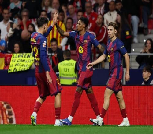 比賽開始后第13分鐘,亞馬爾右路組織反擊,費(fèi)爾明斜側(cè)殺出低射被穆索拒之門外;第27分鐘,尼古拉斯-岡薩雷斯左路貼地斜塞,巴埃納順勢接應(yīng)后立馬橫敲,后點(diǎn)無人盯防的格列茲曼大好機(jī)會下用力過猛踢高了;第34分鐘,巴薩打出精彩的傳切配合,亞馬爾右路分球后立馬前插禁區(qū),奧爾莫不停球分到中路,費(fèi)爾明順勢一做,亞馬爾挑射擊中了橫梁彈出!第38分鐘,朗格萊后場精準(zhǔn)長傳,巴薩造越位失敗,小西蒙尼前插停球抽射上角得手,0:1!