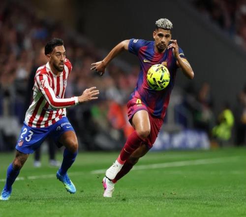 下半場易邊再戰(zhàn)才46秒時間,赫拉德-馬丁防守時候一腳踩在了阿爾馬達(dá)的腳踝上,主裁判沒有猶豫直接出示紅牌,但在VAR介入之后,主裁判又取消了紅牌,改判為黃牌;不滿判罰的穆索吃到黃牌,馬競助教抗議也被紅牌罰下。第59分鐘,亞馬爾強(qiáng)行突破扛開朗格萊防守內(nèi)切兜射偏出了球門;第65分鐘,孔德右路直傳,埃里克-加西亞順勢傳中,費(fèi)蘭-托雷斯后點(diǎn)捅射,穆索飛身精彩撲救。