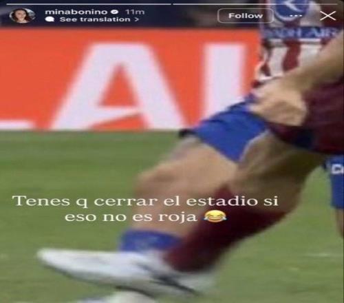 巴爾韋德妻子米娜發(fā)布社媒表示:“如果這都不算紅牌,那這球場(chǎng)真該關(guān)門(mén)了。”