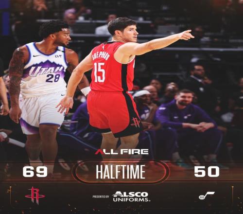 火箭隊(duì)的杜蘭特上半場(chǎng)得到18分,史密斯得到16分,湯普森得到12分和5個(gè)籃板;爵士隊(duì)的威廉姆斯得到12分和6個(gè)籃板,菲利波維斯基得到12分和4個(gè)籃板,森薩博得到10分和3次助攻。
