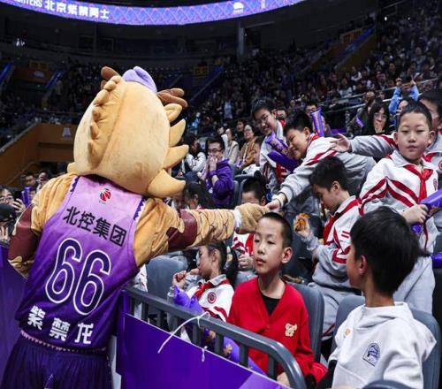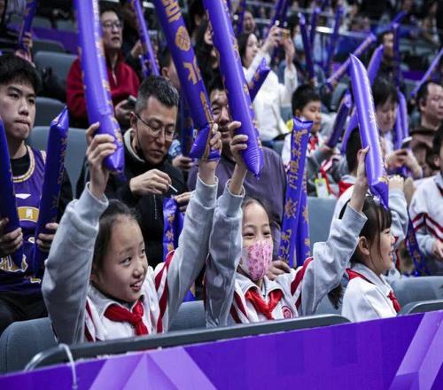 北京市府學(xué)胡同小學(xué)的小球迷們到場(chǎng)為北控男籃加油助威
