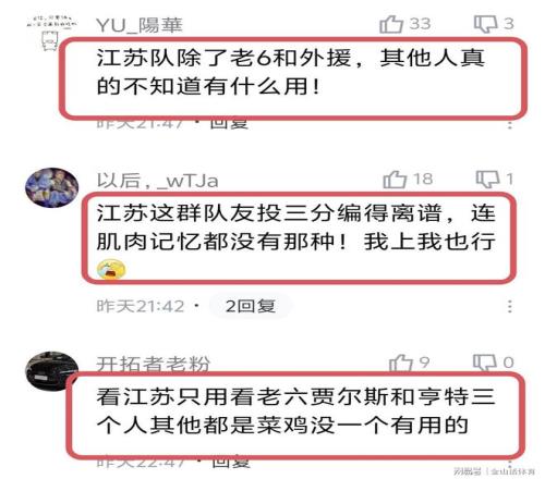 “老六”都爆成這樣了,依然換不來一場勝廣東,賽后網(wǎng)友紛紛表示?!褒媿橑胧钦鎱柡?,隊(duì)友是真不太給力。最后同曦也夠給機(jī)會了,4罰0中,可惜江蘇沒把握住,太可惜!”;“江蘇隊(duì)除了老6和外援,其他人真的不知道有什么用!”;“江蘇這群隊(duì)友投三分編得離譜,連肌肉記憶都沒有那種!我上我也行。”;“看江蘇只用看老六賈爾斯和亨特三個(gè)人其他都是菜雞沒一個(gè)有用的”;“老六啊,這幫隊(duì)友太不給力了,下賽季趕緊換個(gè)球隊(duì)吧”……