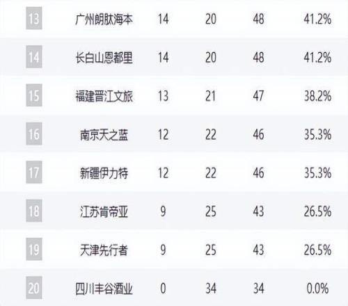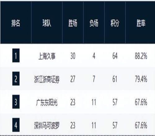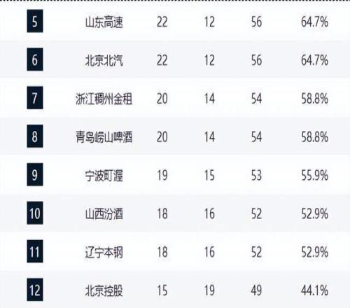 上海拉開3勝場,廣廈沖第1懸了,廣東第3,黑馬第4,山東輸球掉隊