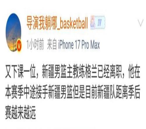新疆男籃本賽季的表現(xiàn)非常糟糕,目前只是以12勝22負的戰(zhàn)績排名倒數(shù)第四,基本上已經(jīng)無緣季后賽。據(jù)媒體人“導(dǎo)演我躺哪兒”透露,由于帶隊成績沒有達到預(yù)期,新疆男籃主教練格蘭已經(jīng)離職。至于誰會成為新疆男籃的新任主教練,目前還沒有確切的消息。不出意外的話,老帥姜正秀應(yīng)該會以臨時主教練的身份執(zhí)教球隊。