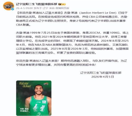 萊迪的加入,意味著遼寧隊(duì)本賽季陣容徹底定型:雙外援內(nèi)線+雙外援后衛(wèi)的“2+2”配置成型,兼顧攻防平衡與陣容深度。球隊(duì)正全力備戰(zhàn)季后賽,萊迪能否快速融入體系,將成為沖擊總冠軍的重要變量。