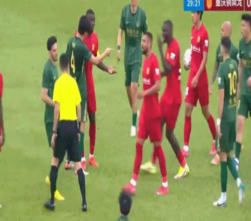 雙方球員隨即一擁而上,發(fā)生了口角,浙江隊球員集體質(zhì)疑主裁判的判罰。起身之后,米特里策大罵仍然倒在草坪上的李鎮(zhèn)全,再次引發(fā)了雙方球員的沖突。