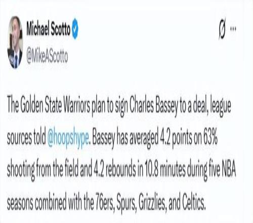巴錫近期以兩份10天短合同的身份為凱爾特人效力了20天。隨著他在波士頓的第二份10天合同于周日到期,他已成為自由球員。隨后,勇士決定簽下他,來補(bǔ)強(qiáng)內(nèi)線。