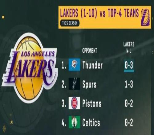 沒想到!湖人打強隊....戰(zhàn)績居然1勝9負(fù)!