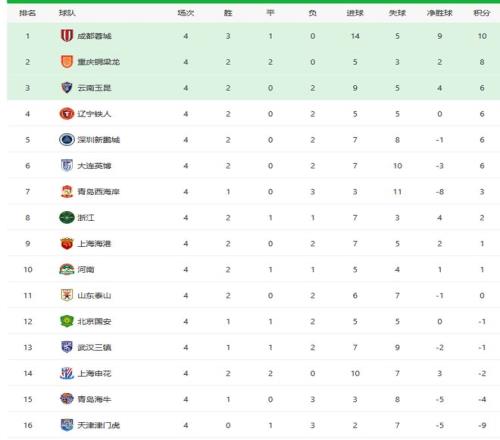 中超綜述及積分榜,成都重慶領(lǐng)跑,申花逆轉(zhuǎn)贏球,泰山隊第11
