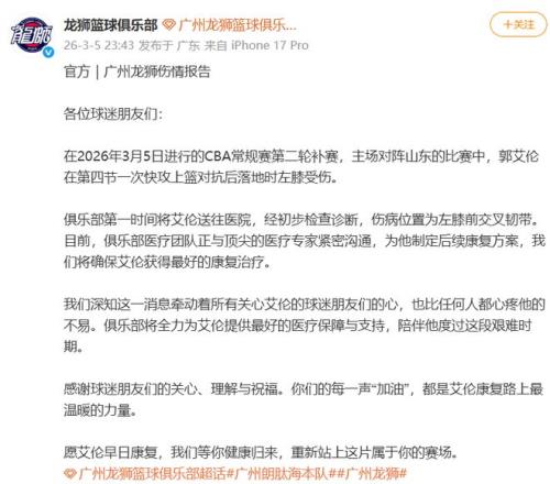 2026年,對于郭艾倫來說太不友好了,要知道過去三月份他才遭遇了前交叉韌帶斷裂賽季報銷,現(xiàn)在經(jīng)濟方面又損失巨大。