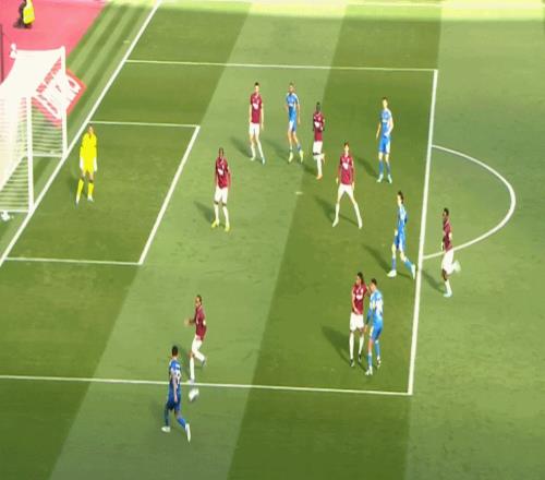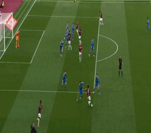 第90+6分鐘,迪薩西門前搶點扳平比分!西漢姆聯(lián)2-2