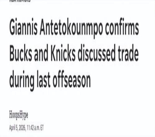 名記Shams曾在2025年10月8日(2025-26賽季開賽兩周前)報(bào)道稱,字母哥明確表示,如果雄鹿決定交易他,尼克斯是他唯一愿意被送往的球隊(duì)。Shams還提到,尼克斯當(dāng)時(shí)確實(shí)就字母哥向雄鹿詢價(jià),雙方在8月就已“展開對(duì)話”,但交易始終沒(méi)有實(shí)質(zhì)性進(jìn)展。